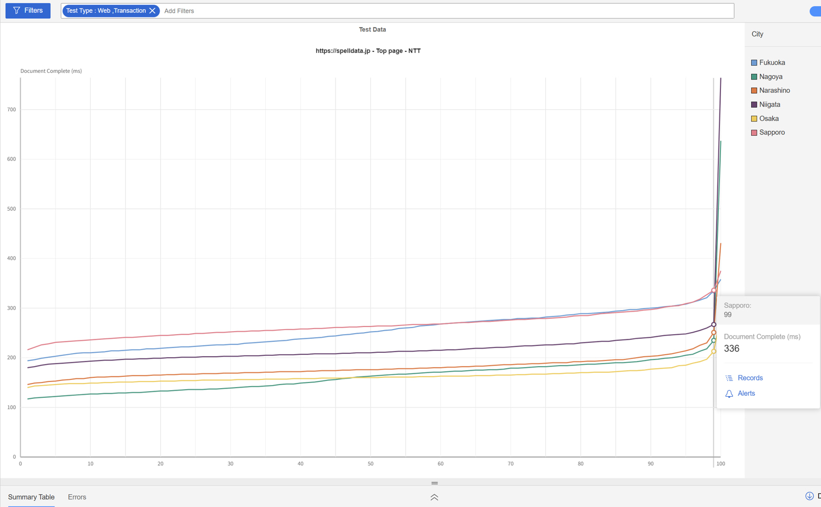Gcore CDNの国内での1か月分の累積分布関数によるレスポンスタイムの品質分析 - ネットワークの冗長性