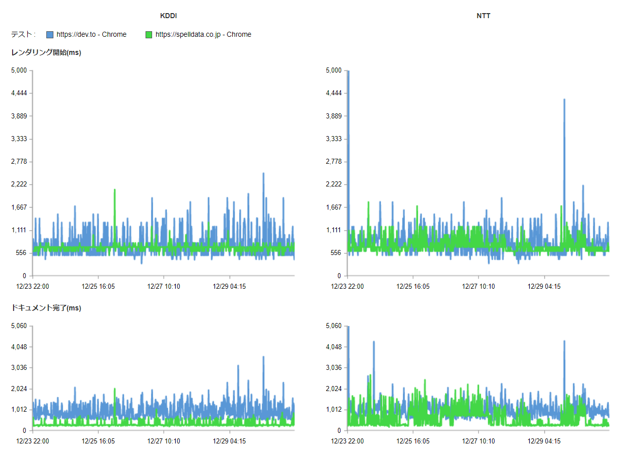 時間の推移と共に、表示速度や可用性(繋がりやすさ)が、どのように変化しているかを分析したグラフです。